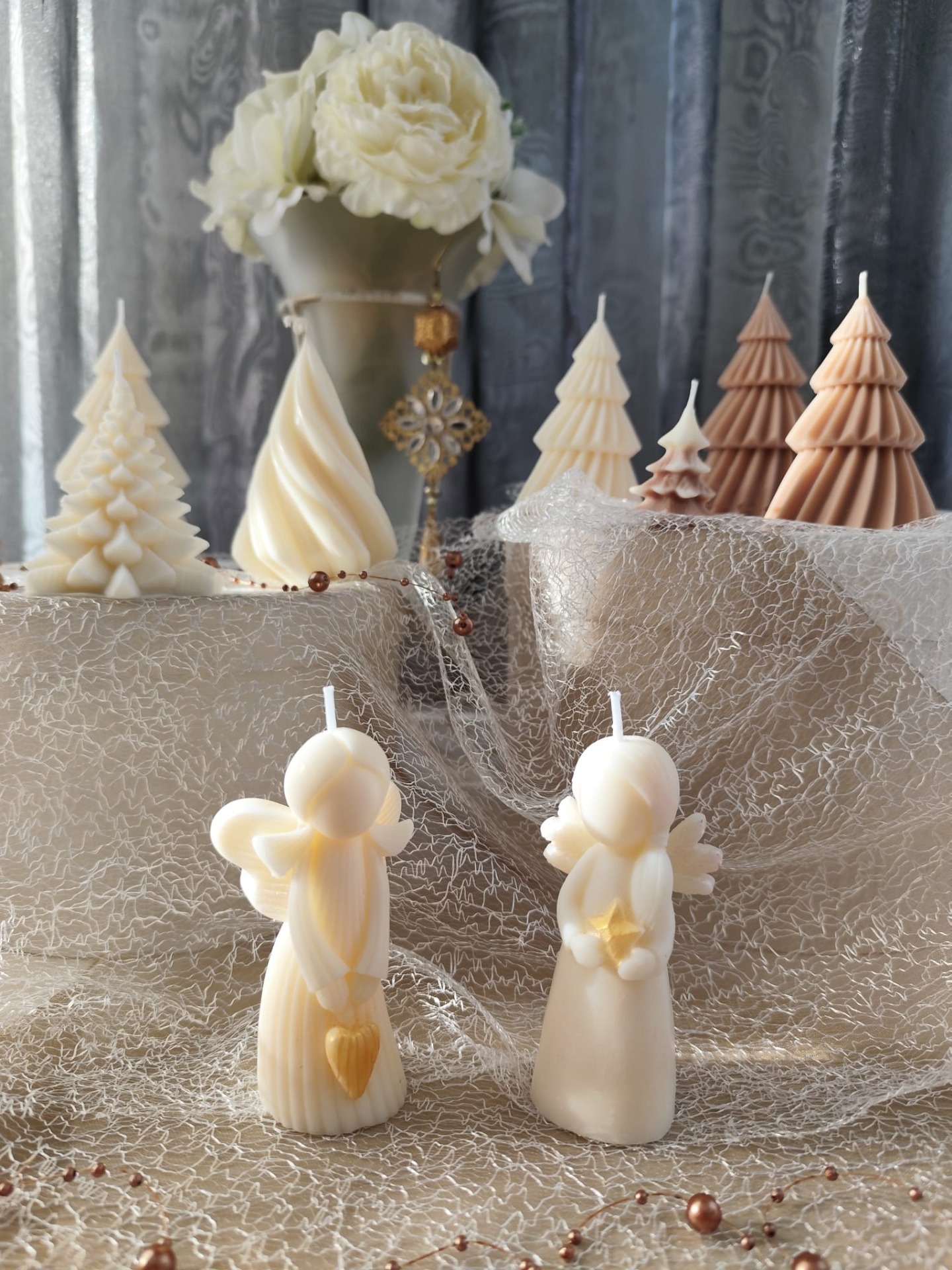 Luxusní svíčka ve tvaru vánočních andělíčků. Dostupná ve dvou variantech – nebo jako cenově zvýhodněná sada.