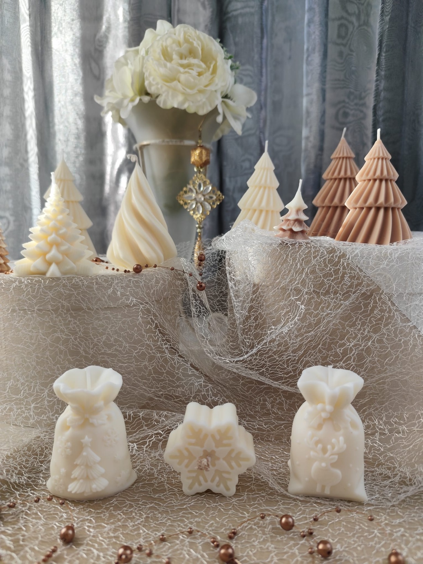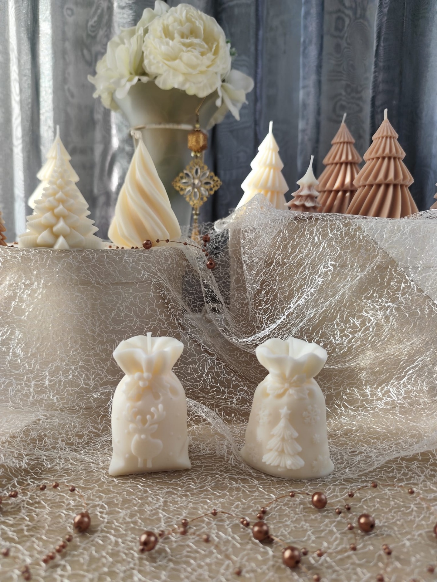 Luxusní svíčka ve tvaru vánočních pytlů.