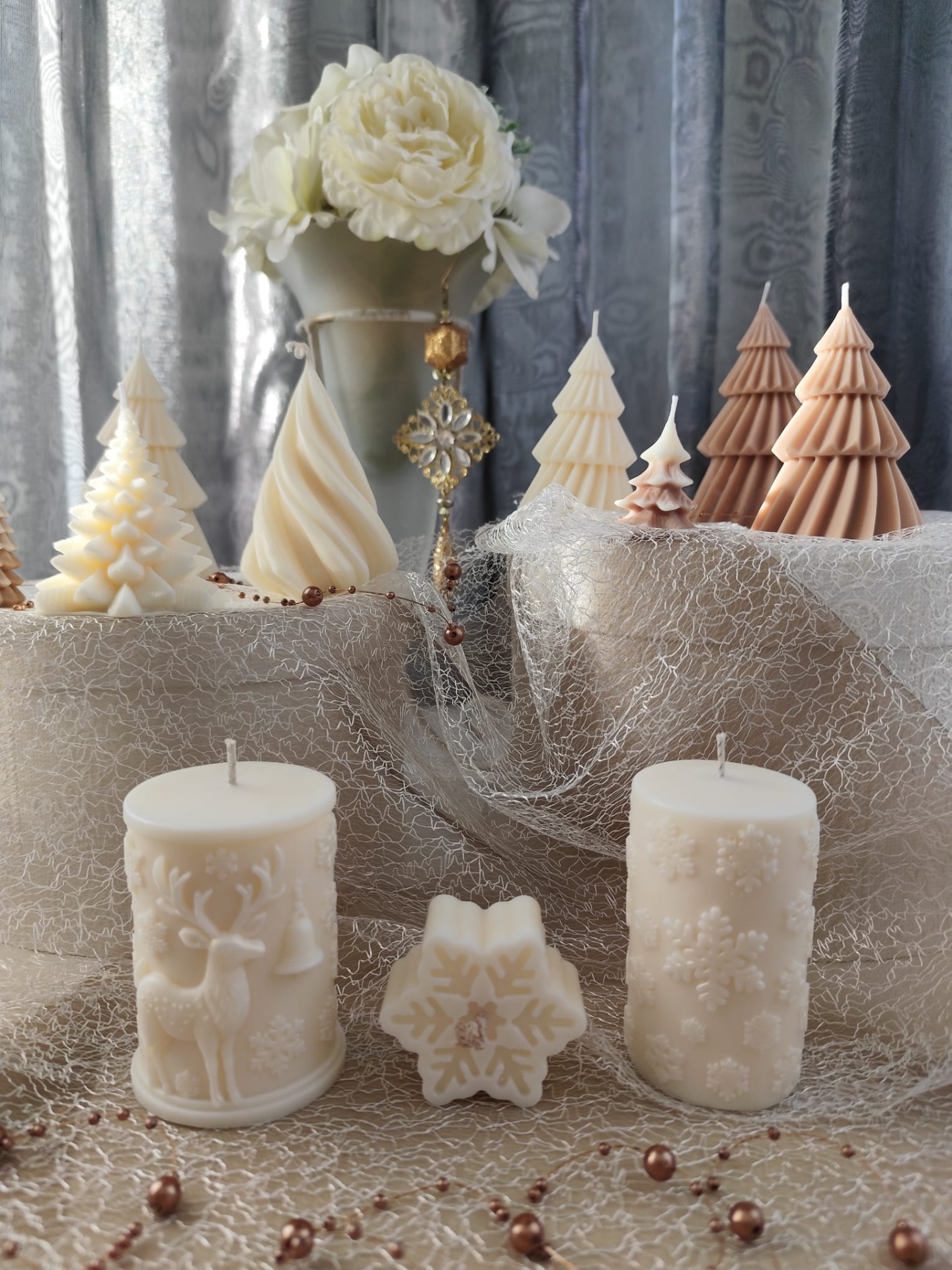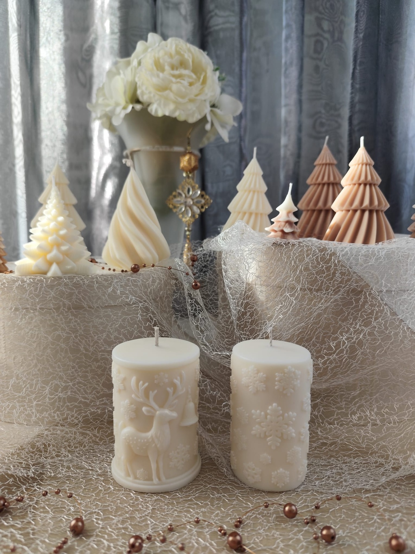 Luxusní svíčka ve tvaru vánočních válců. Dostupná ve dvou velikostech – nebo jako cenově zvýhodněná sada.