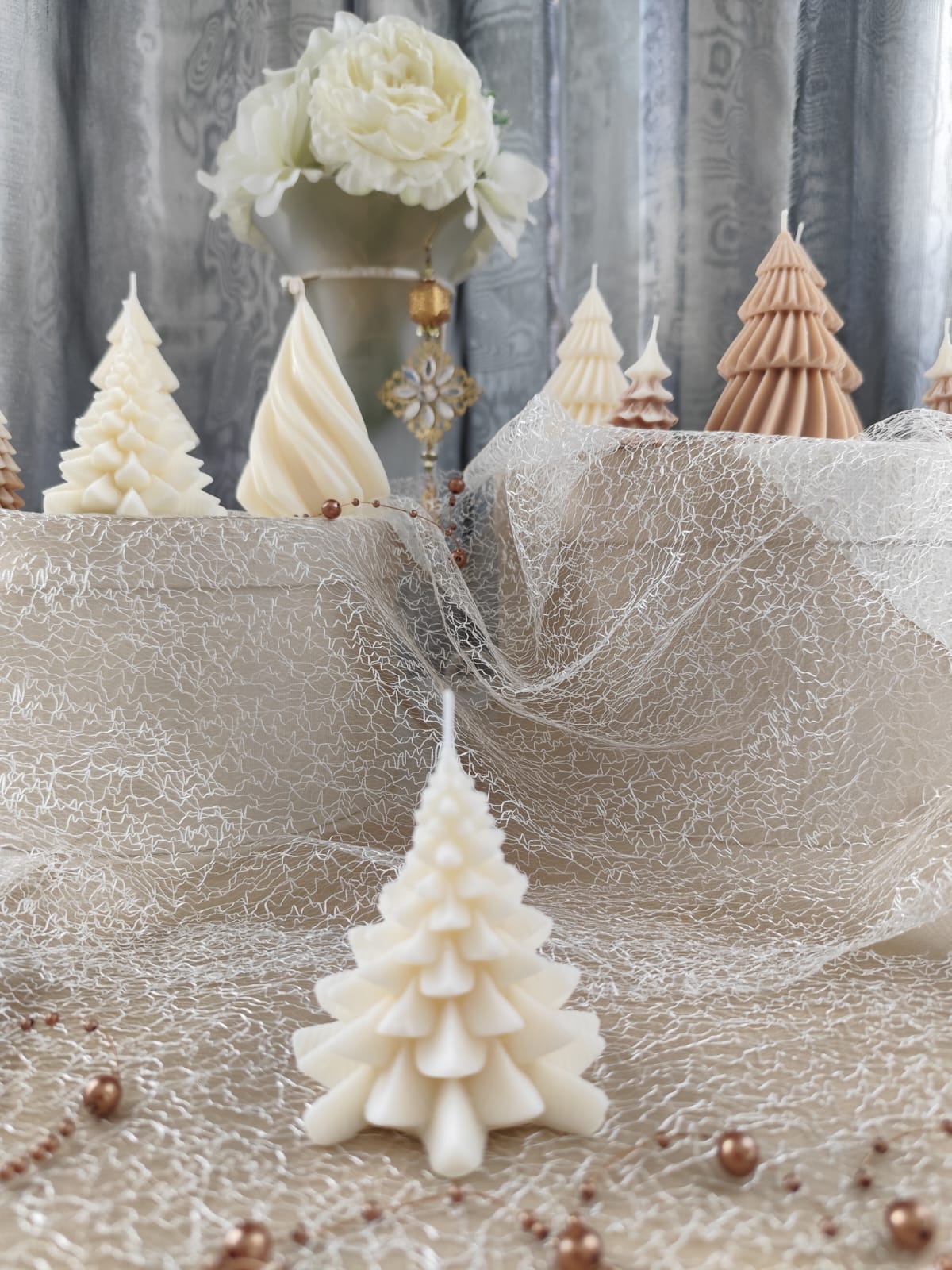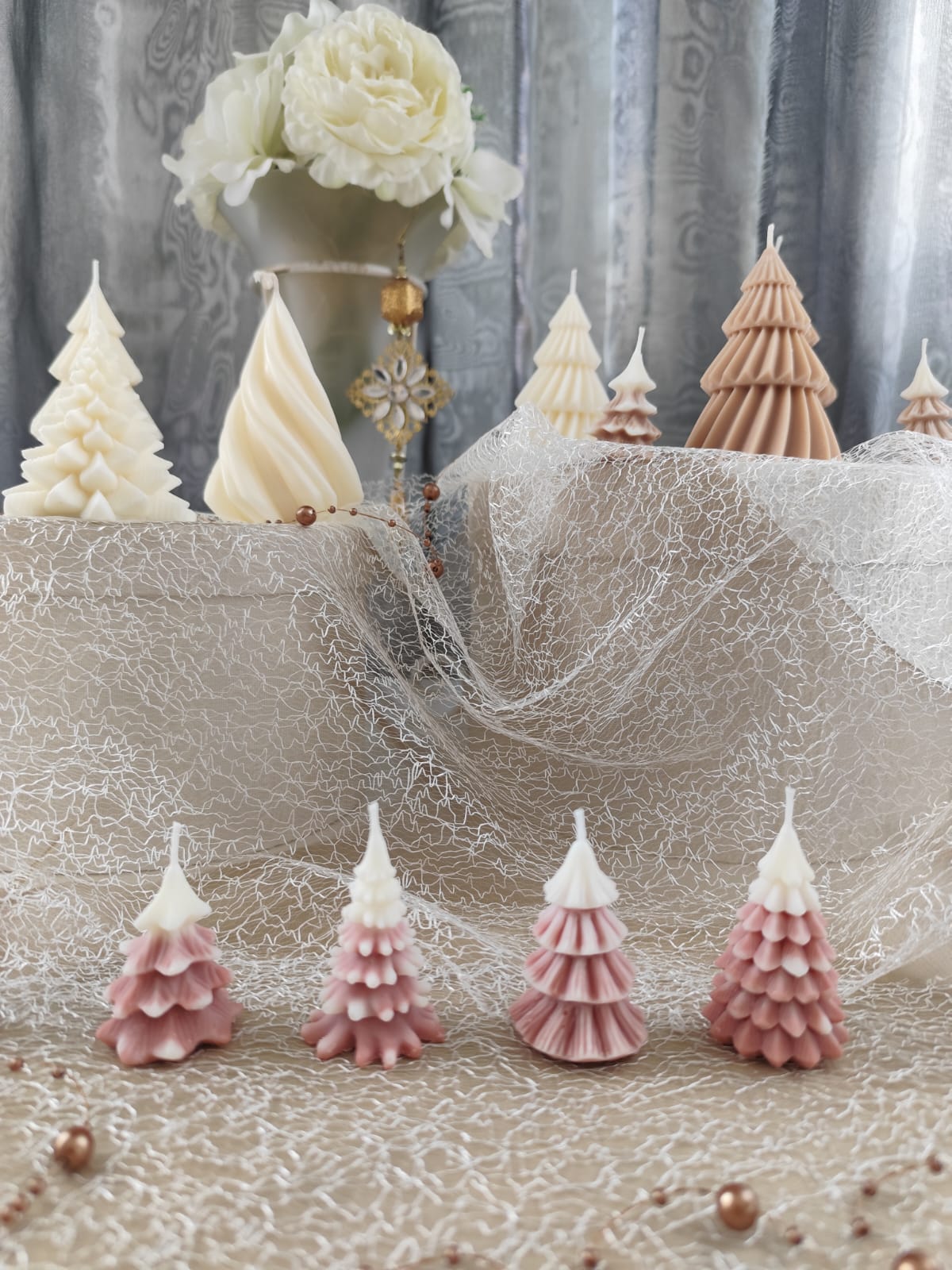 Luxusní svíčka ve tvaru vánočního stromečku. Dostupná v pěti velikostech – nebo jako cenově zvýhodněná sada.