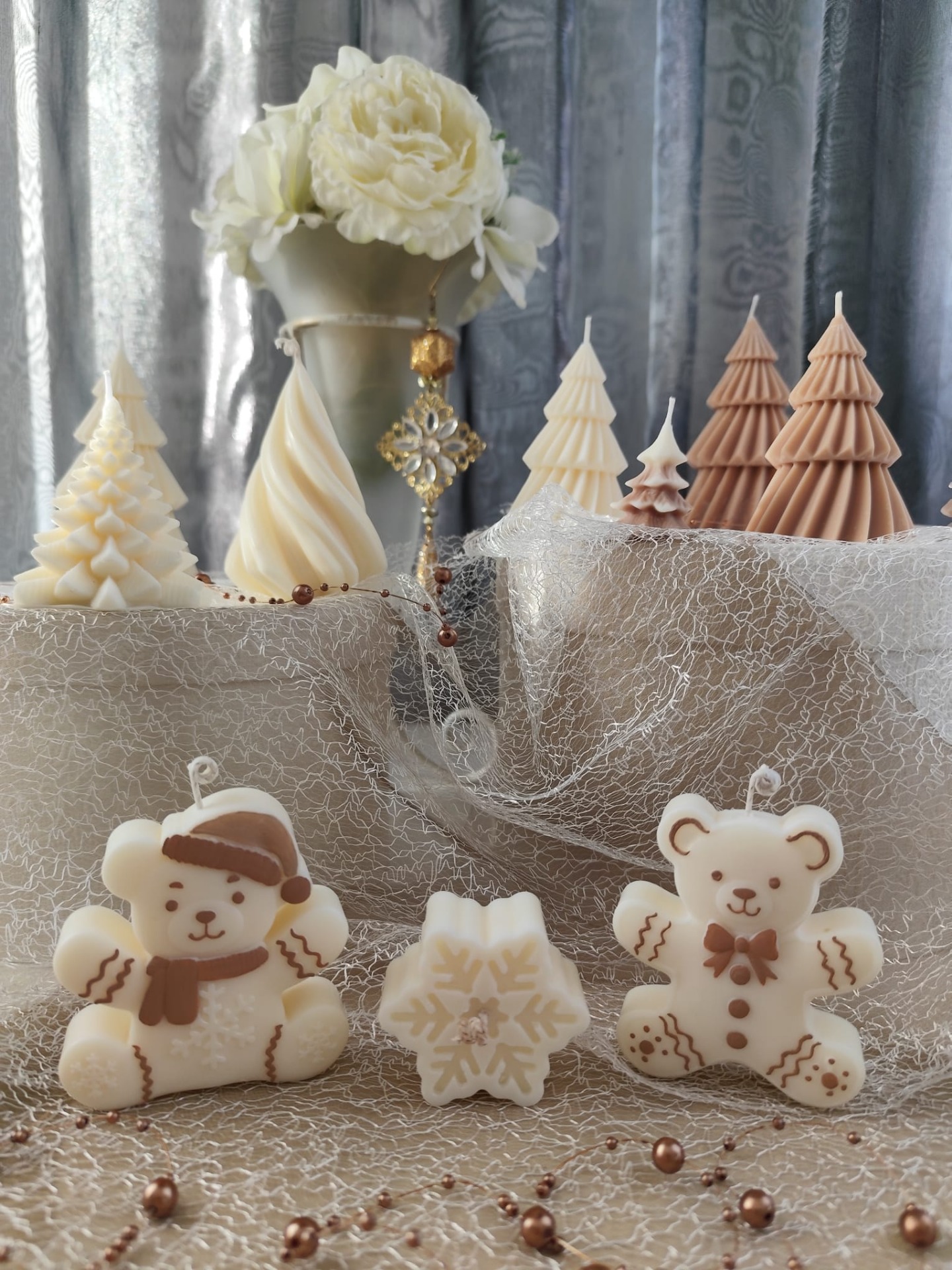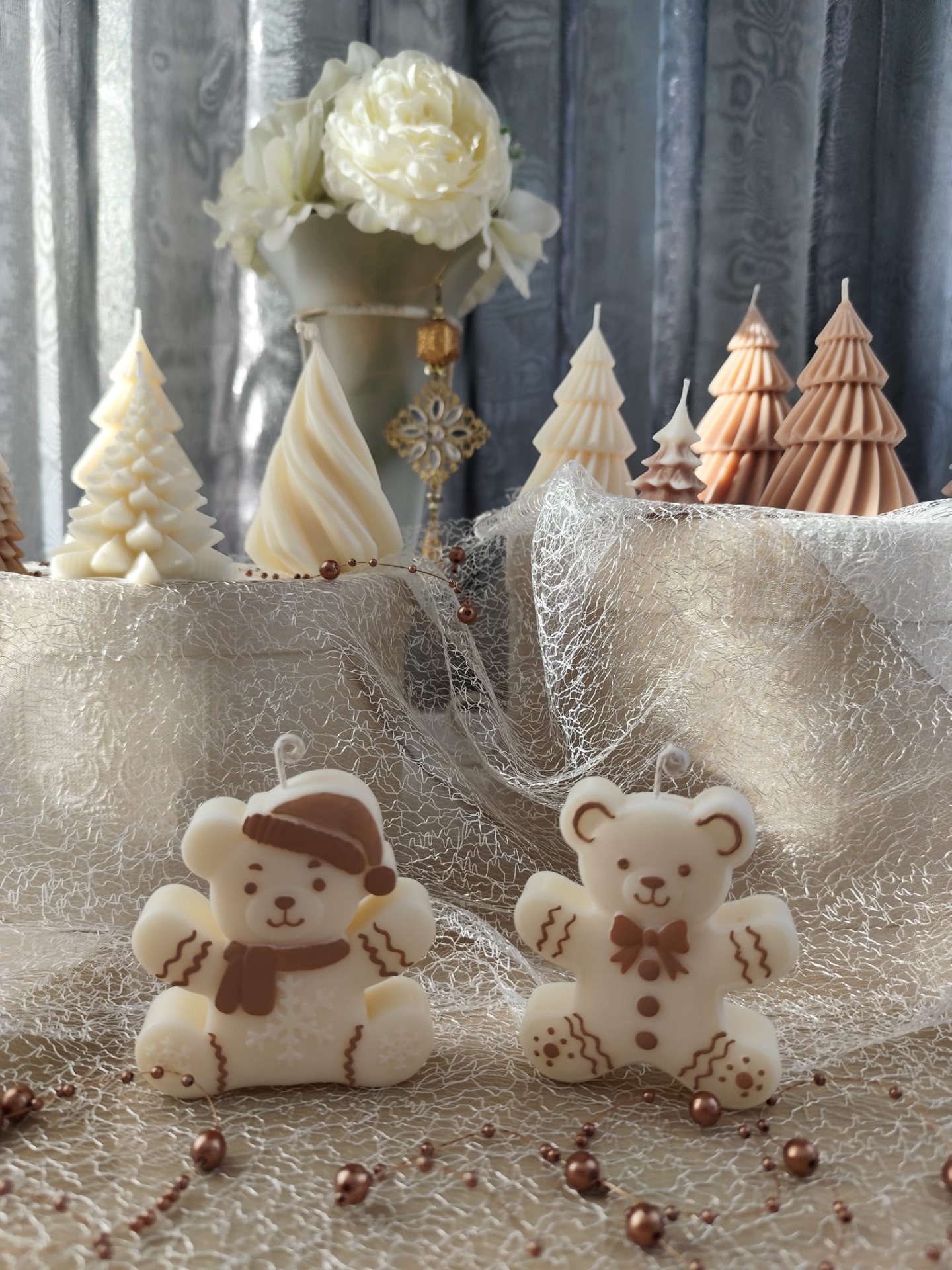 Luxusní svíčka ve tvaru perníkových medvídků.