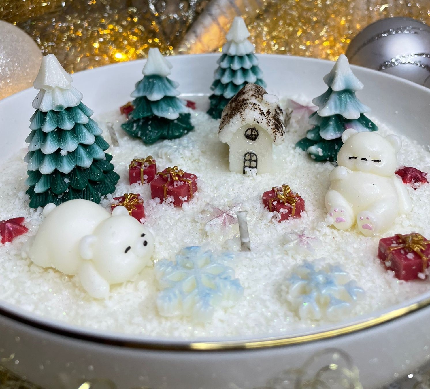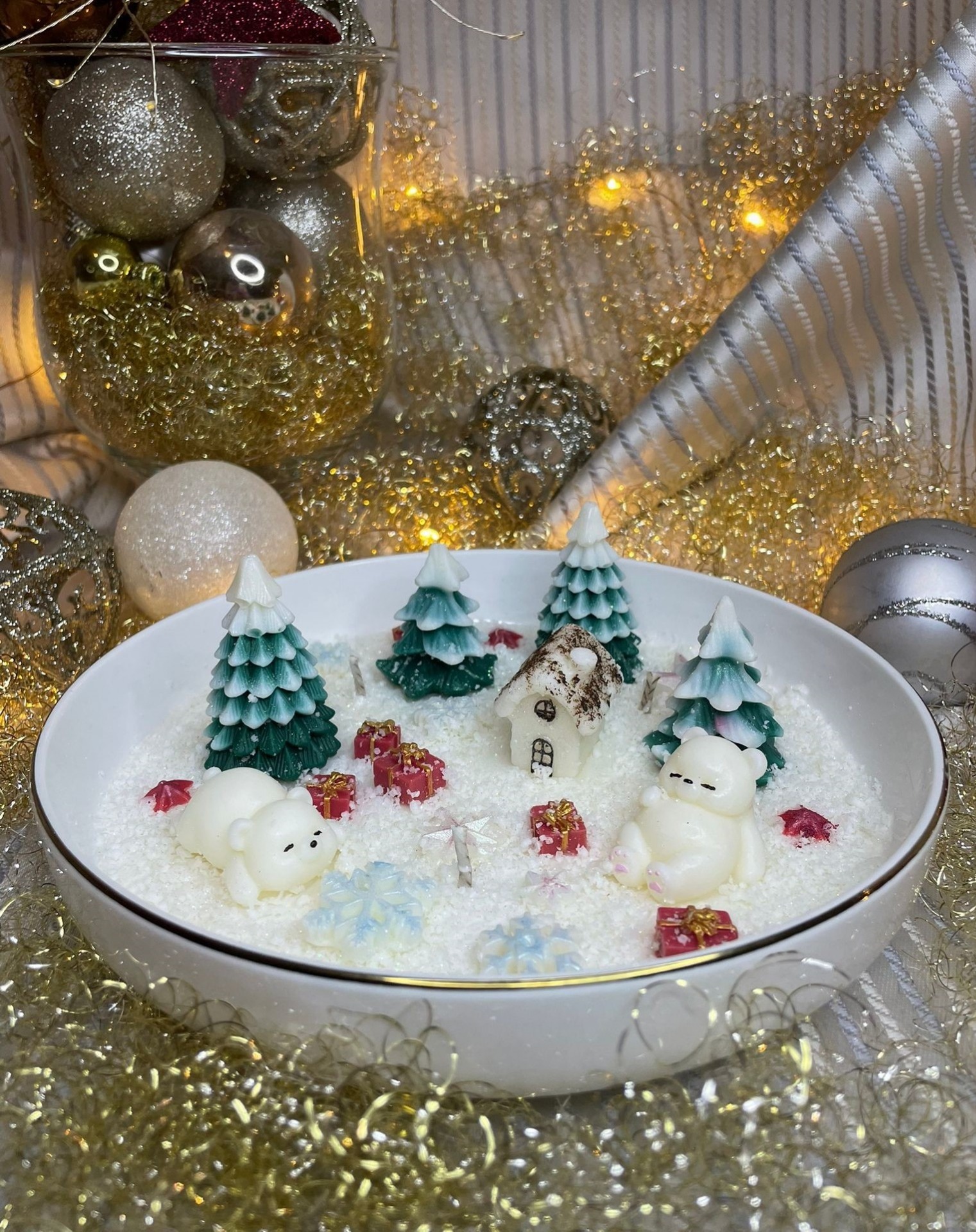 Luxusní svíčka ve tvaru vánoční pohody v keramické nádobě.