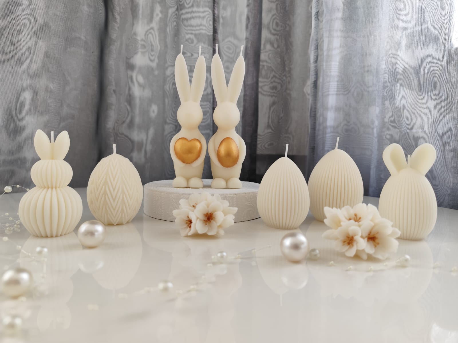 Velikonoce klepou na dveře a svíčky ze sójového vosku ve tvaru králíčků a vajíček nesmí chybět na svátečním stole. Jemně provoní Váš domov a přinesou radost i klid do Velikonočního období.