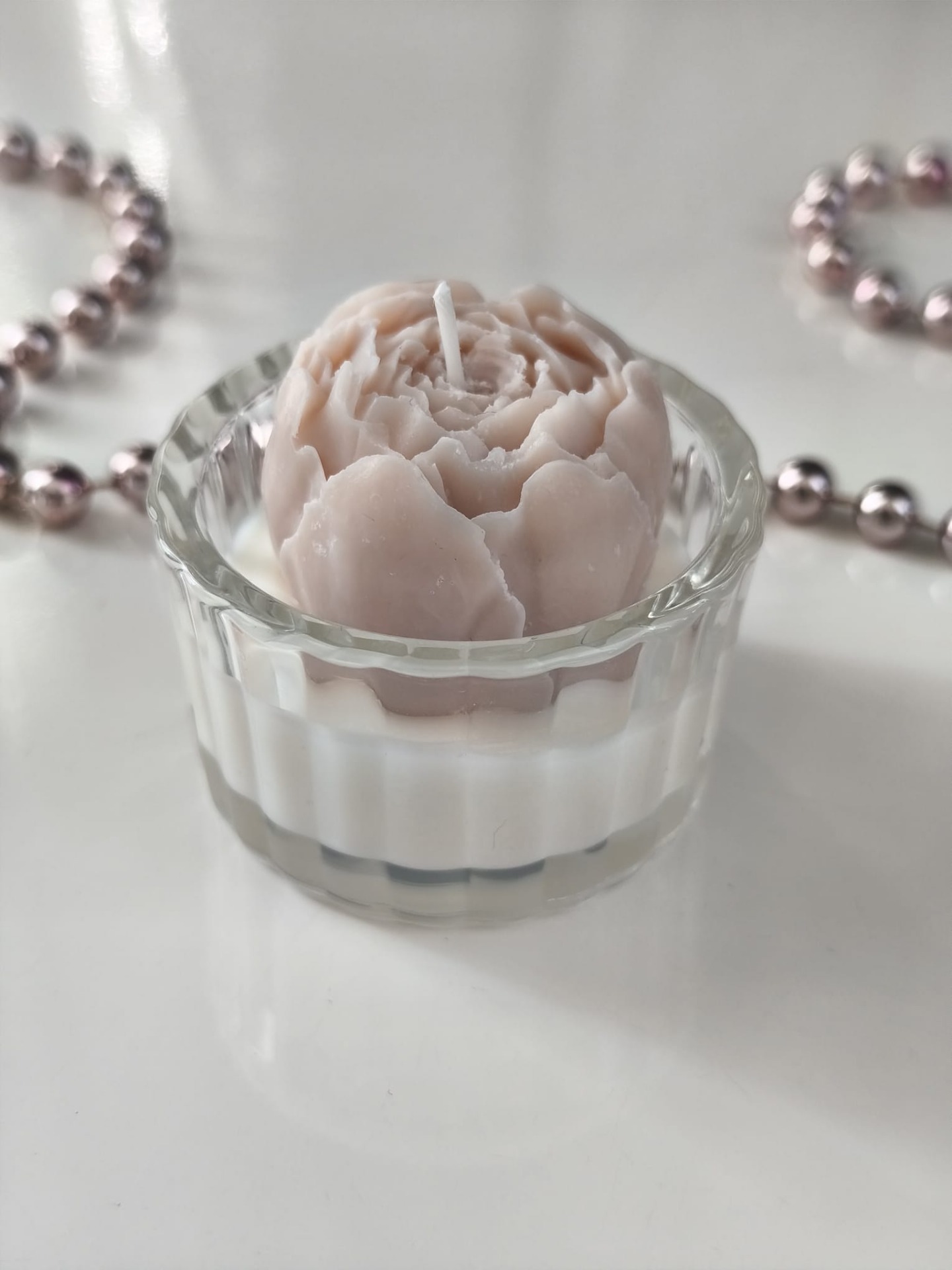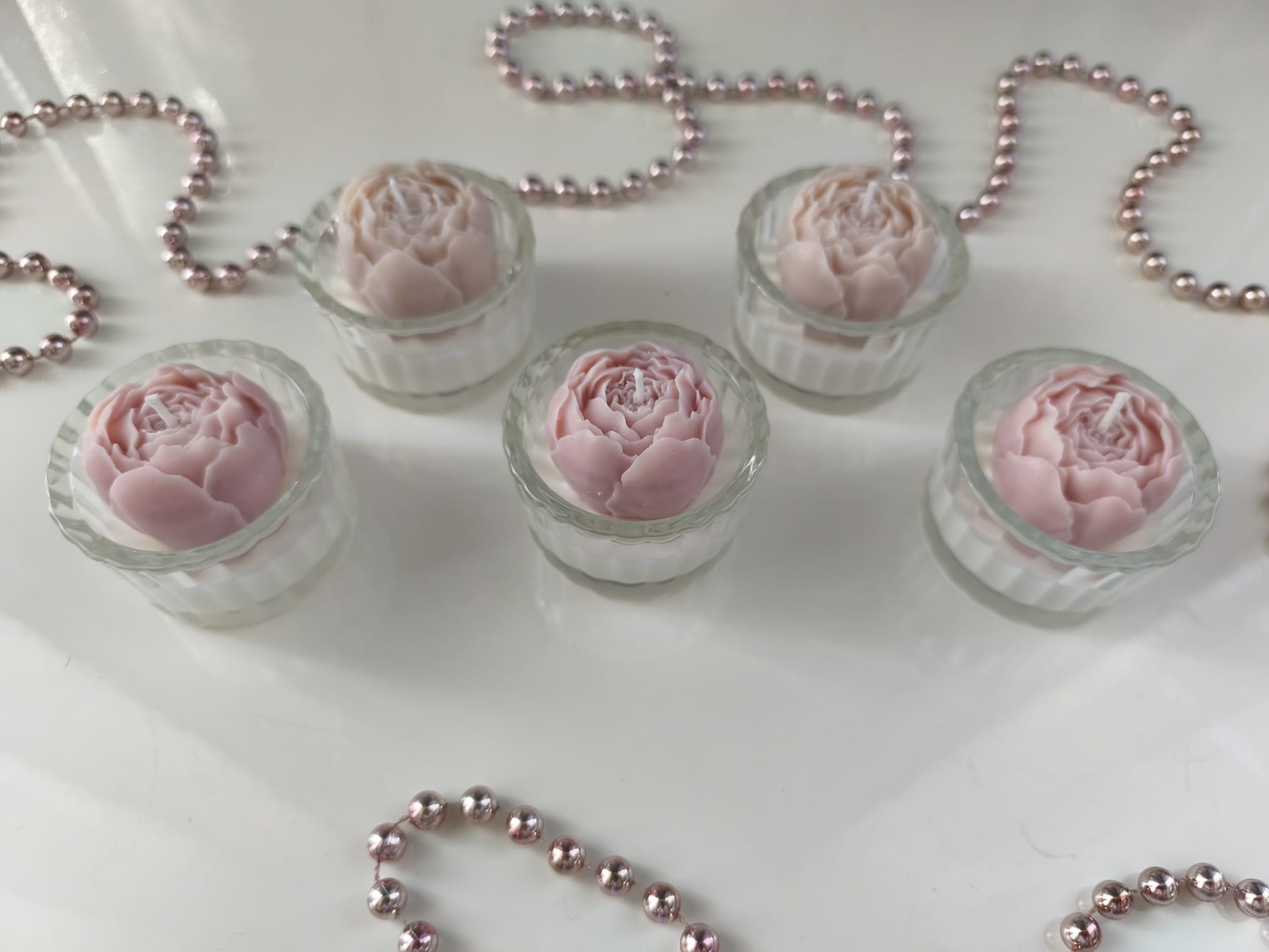 Luxusní svíčky ve tvaru květin ve skle.