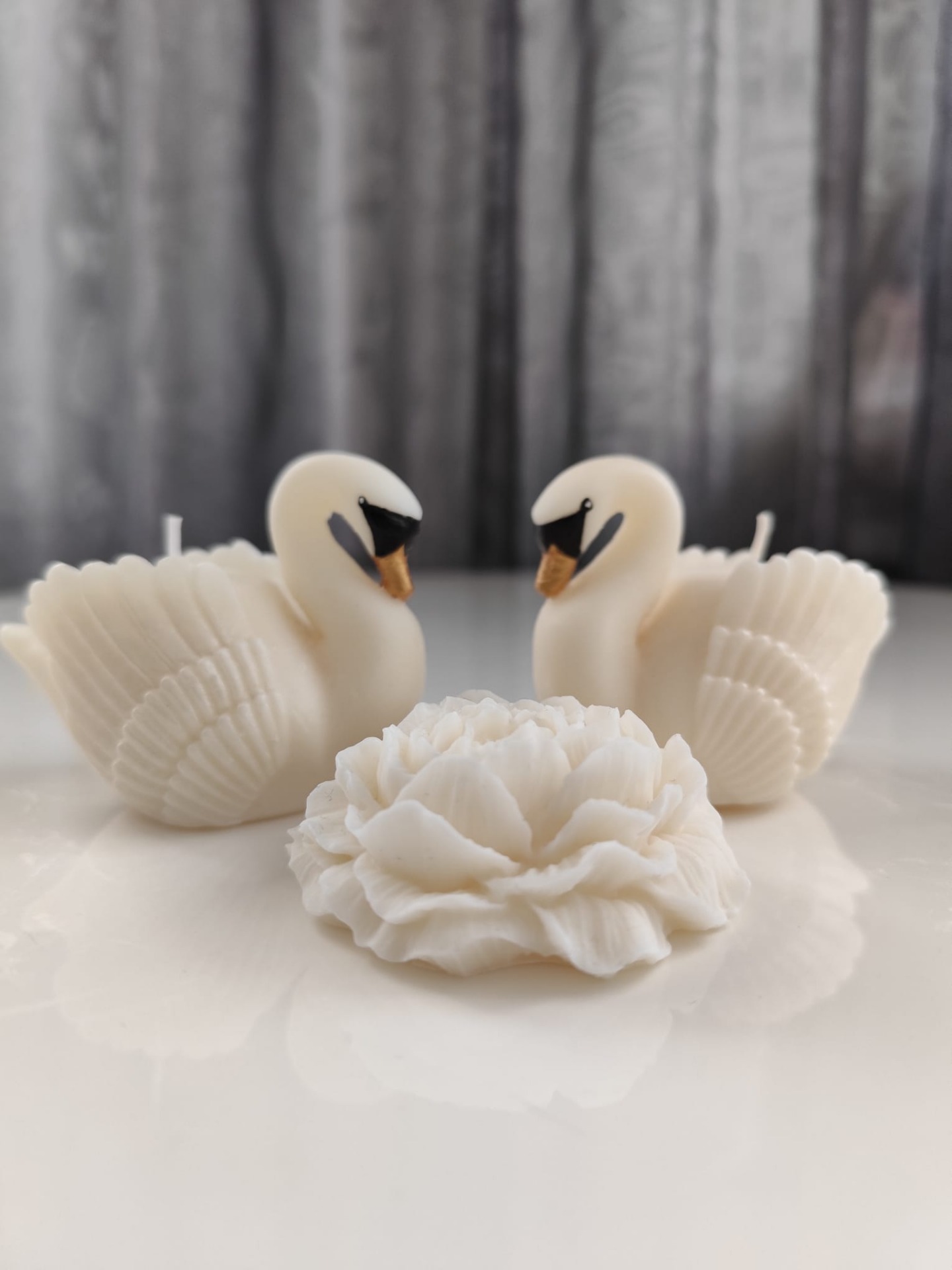 Luxusní svíčka ve tvaru labutě, ručně odlitá z přírodního sójového vosku. Elegantní vzhled a jemné detaily dělají ze svíčky krásný doplněk do interiéru i skvělý dárek. Dostupná ve dvou variantech nebo jako cenově zvýhodněná sada.
