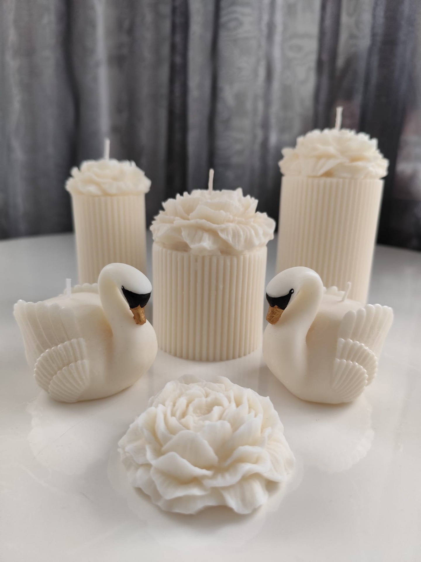 Luxusní svíčka ve tvaru labutě, ručně odlitá z přírodního sójového vosku. Elegantní vzhled a jemné detaily dělají ze svíčky krásný doplněk do interiéru i skvělý dárek. Dostupná ve dvou variantech nebo jako cenově zvýhodněná sada.