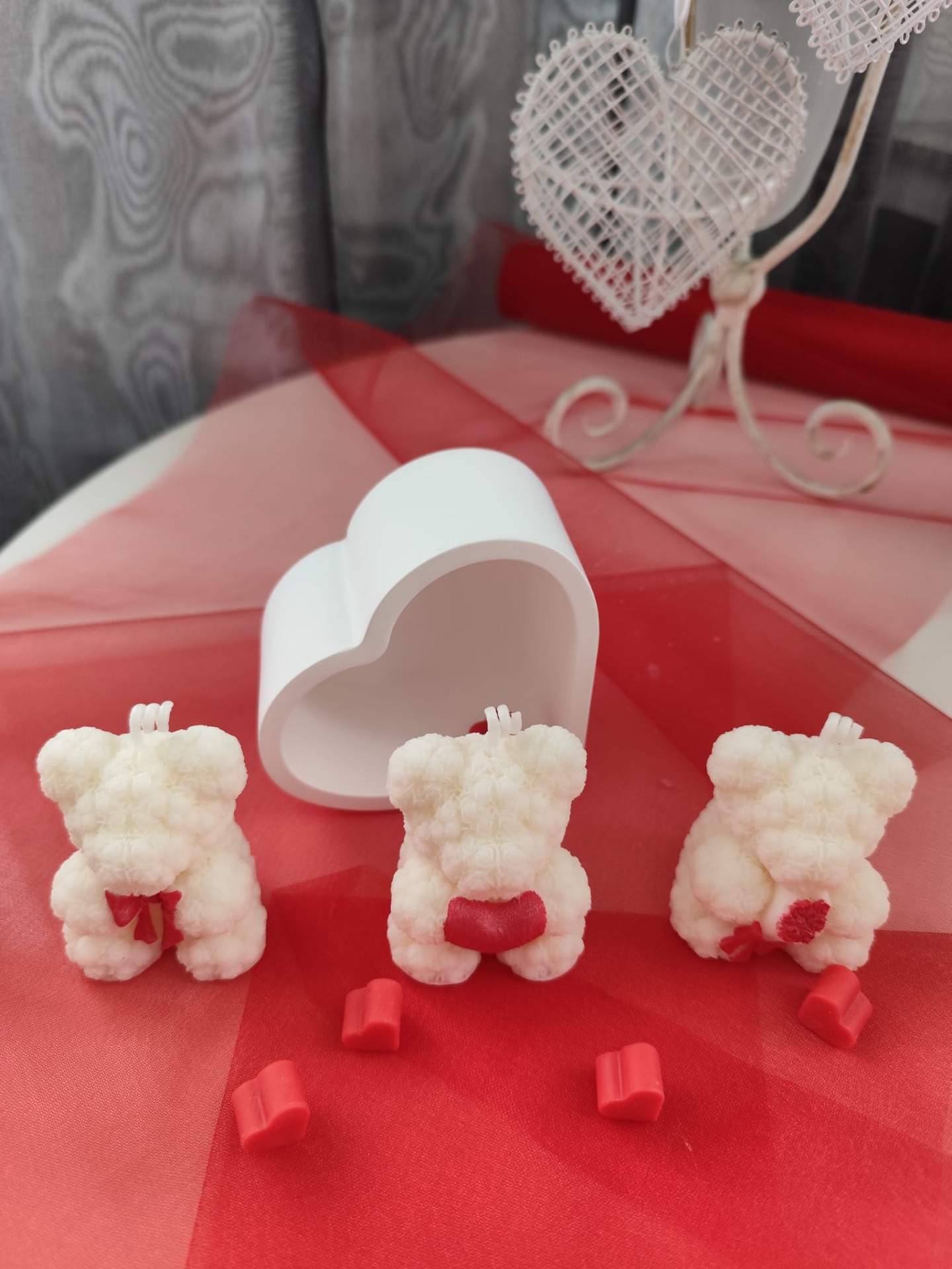 Tato zamilovaná kolekce vznikla jako oslava lásky ve všech jejích podobách. Jemné tvary srdcí, roztomilí medvídci a něžné detaily vytvářejí atmosféru tepla, blízkosti a romantiky. Každý kousek je navržen tak, aby potěšil – jako dárek z lásky, milá pozornost nebo dekorace, která zahřeje u srdce. Vše je ručně vyrobeno z kvalitního sójového vosku, díky kterému svíčky krásně a čistě hoří.