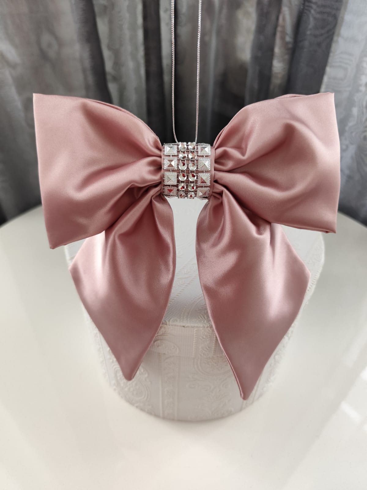 Luxusní ozdoba na vánoční stromeček ve tvaru mašle. Dostupná ve dvou barvách smetanové a růžové v dárkovém balení.