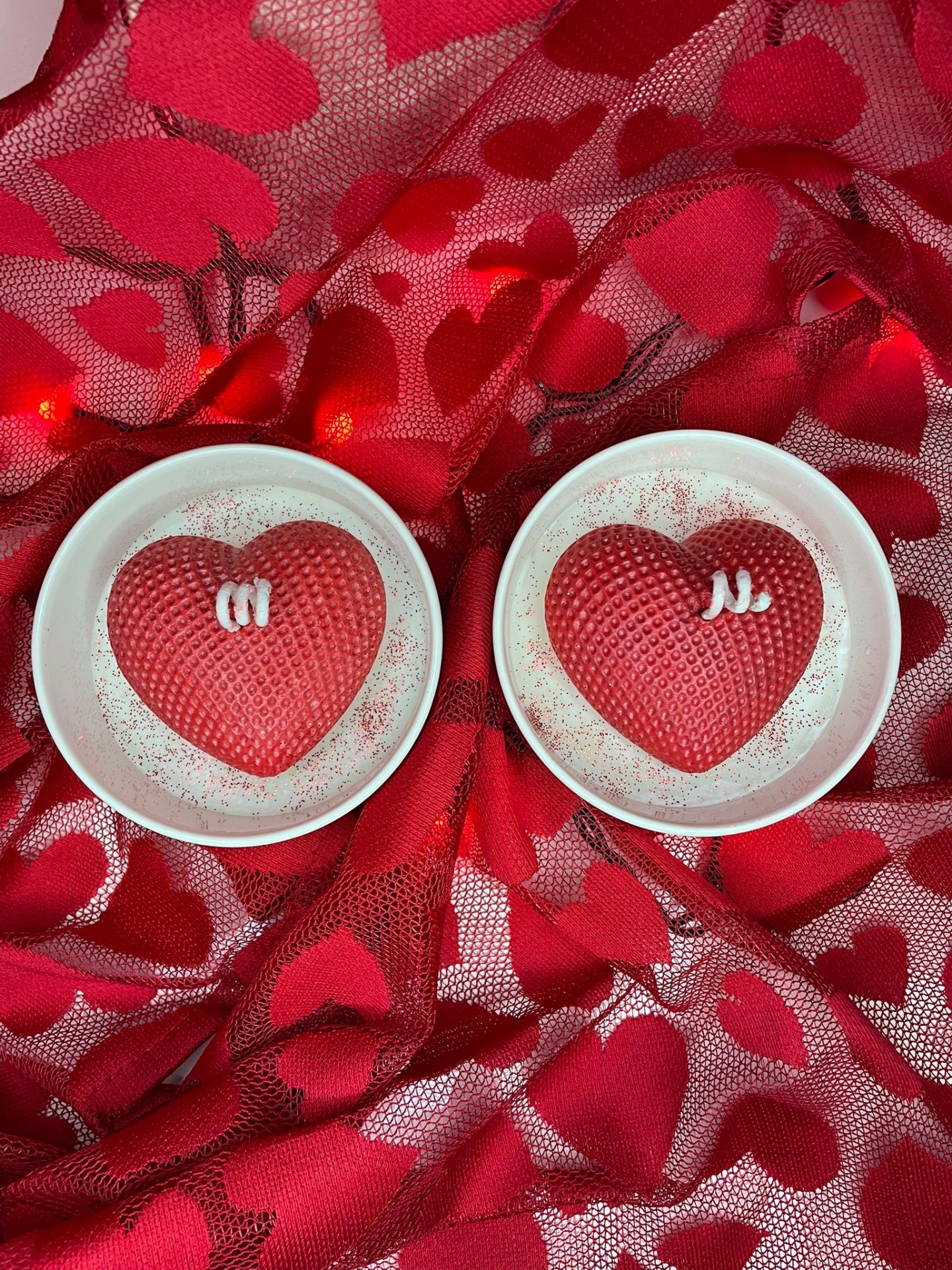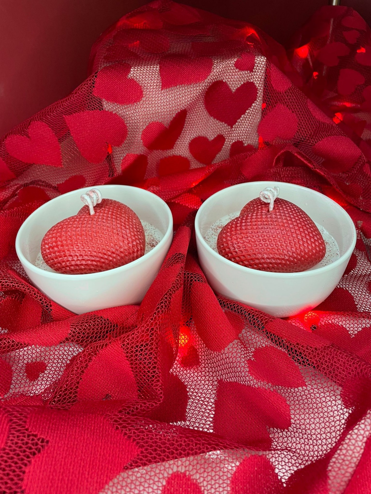 Luxusní svíčky ve tvaru srdce v keramice.